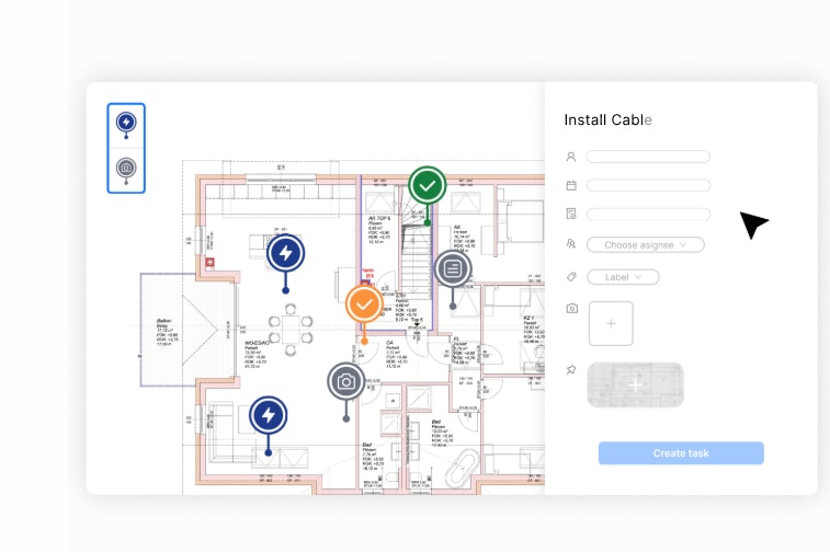 Task management: Tasks can be marked on the plan, assigned to team members and tracked with checklists, photos and due dates. Multiple projects can be managed simultaneously.
