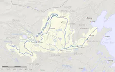 Map of the Yellow River, whose watershed covers most of northern China and drains to the Yellow Sea, 2010.