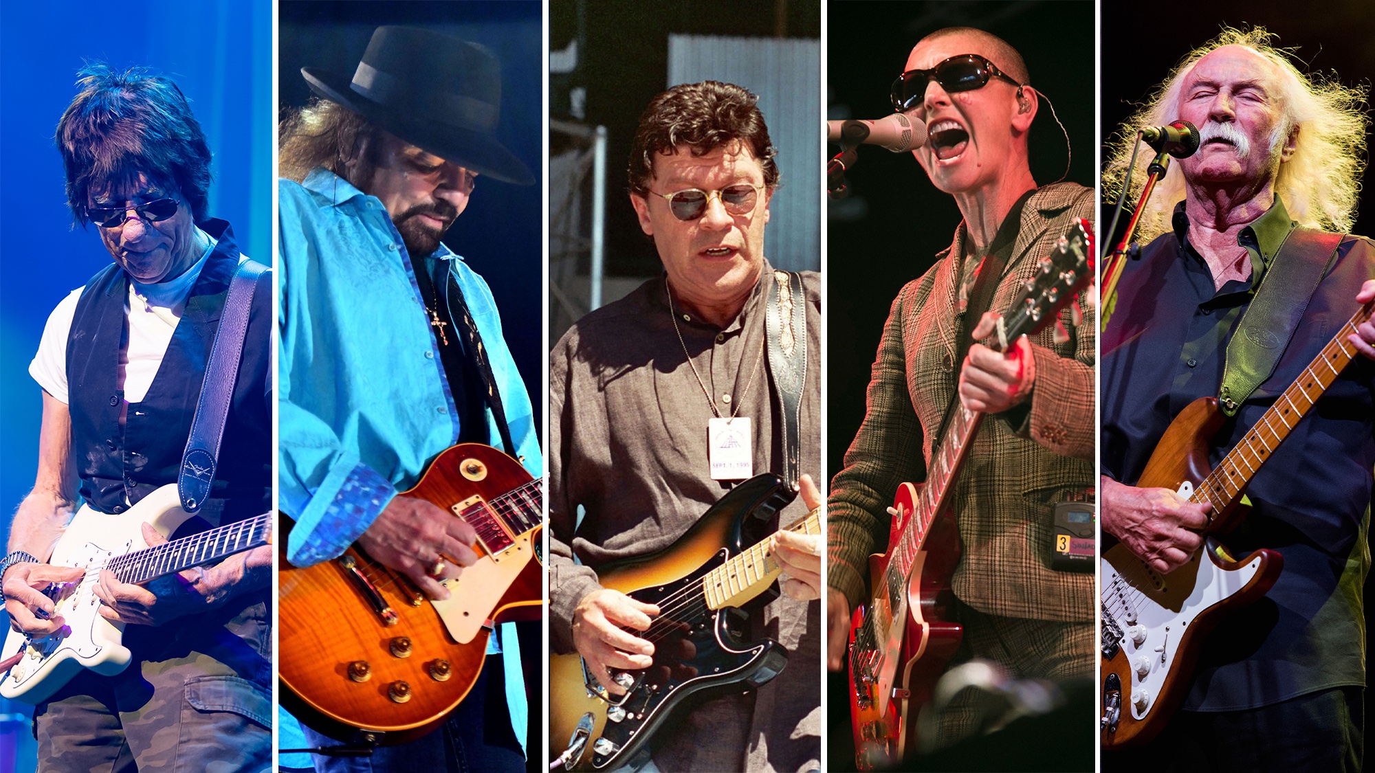(from left) Jeff Beck, Gary Rossington, Robbie Robertson, Sinead O'Connor, David Crosby