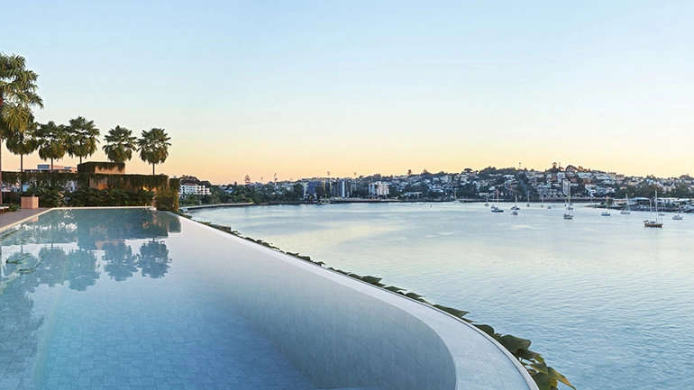 • Render of the infinity pool at Kimpton in Brisbane’s Teneriffe