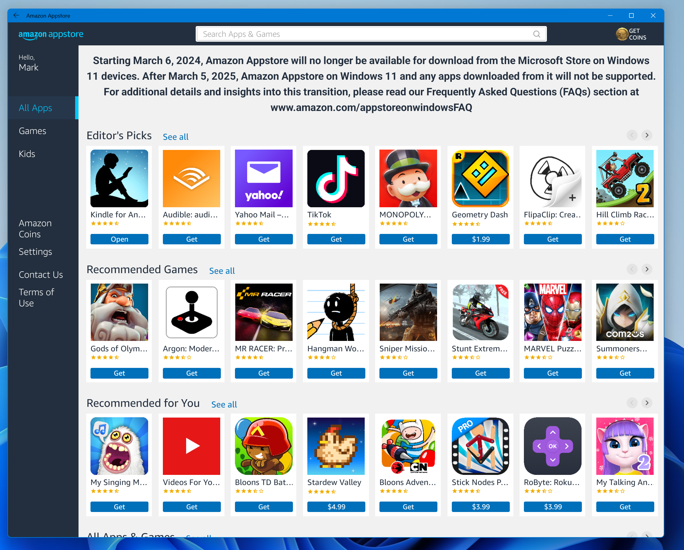 Amazon has also released a FAQ section providing additional details, stating that apps installed from the Amazon Appstore on Windows 11 devices will continue to function until March 5, 2025. Over time, some apps may experience functionality issues.