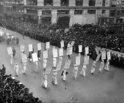 In 1915, an estimated 25,000 women marched in New York City demanding the right to vote throughout the United States. The 19th Amendment, passed by Congress in 1919 and ratified in 1920, gave women the vote.