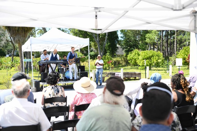 Photo Caption: Members of various religious groups enjoy the Flag Band at the Garden of Rivdan in Clearwater.