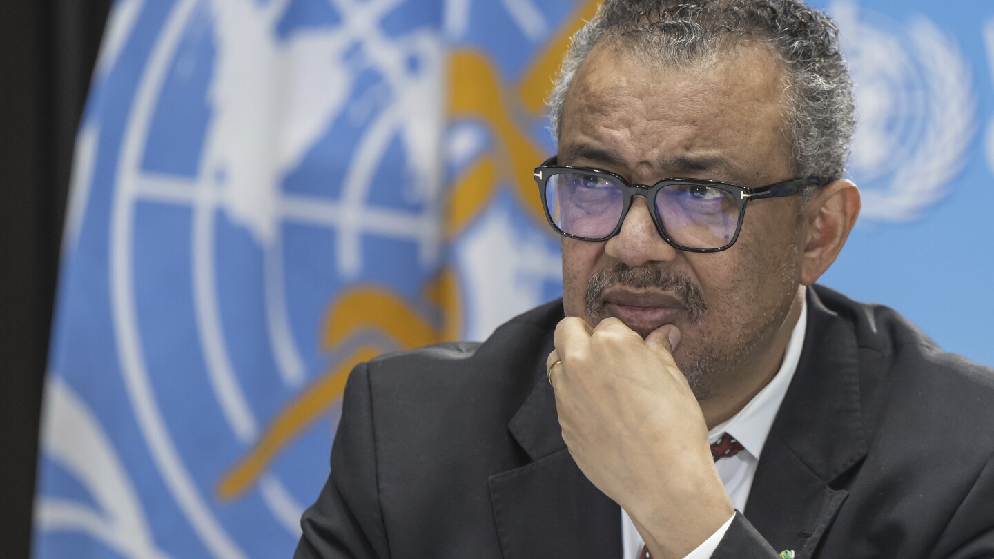 FILE – Tedros Adhanom Ghebreyesus, Director General of the World Health Organization (WHO), speaks to journalists during a press conference at the World Health Organization (WHO) headquarters in Geneva, Switzerland, Thursday April 6, 2023. The head of the U.N. health agency says holiday gatherings and the spread of the most prominent variant globally led to increased transmission of COVID-19 last month. (Martial Trezzini/Keystone via AP, File)