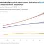 Sexual assaults both indoors and outdoors also increased in warm temperatures, but declined or plateaued in hot weather.