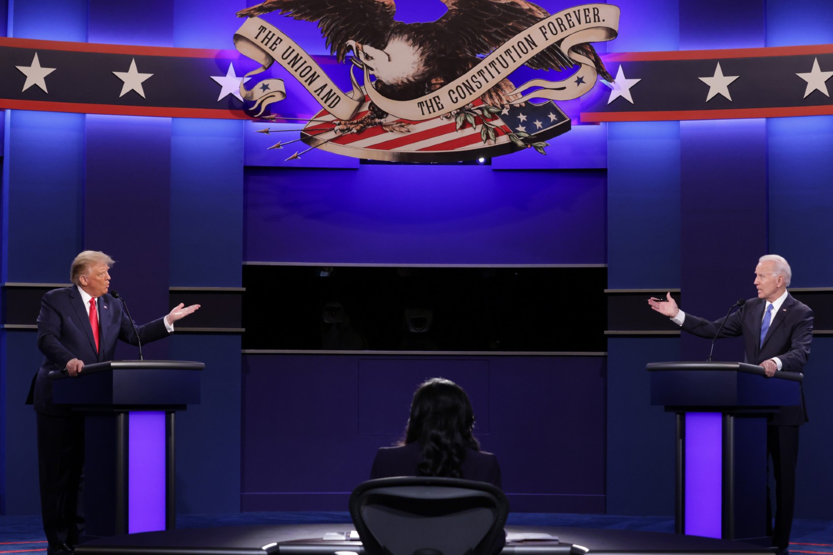 U.S. President Donald Trump and Democratic presidential nominee Joe Biden participate in the final presidential debate at Belmont University on October 22, 2020 in Nashville, Tennessee. (Chip Somodevilla/Getty Images)