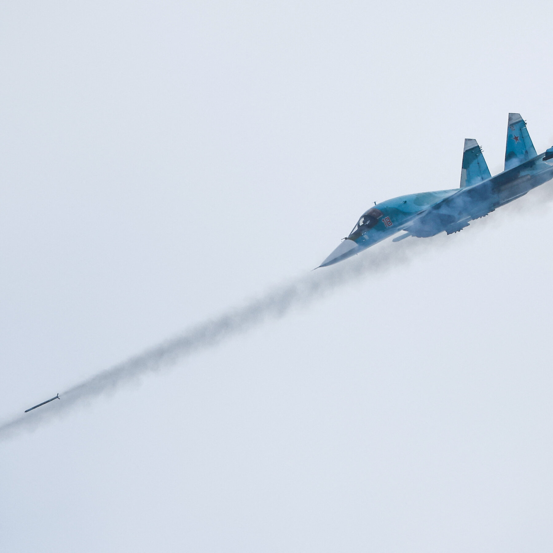 A Russian Sukhoi Su-34 fighter-bomber fires missiles during a competition at the Dubrovichi range outside Ryazan, Russia.Credit…Maxim Shemetov/Reuters