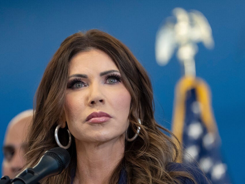U.S. Homeland Security Secretary Kristi Noem speaks during a press conference, Thursday, Jan. 8, 2026, in New York. (AP Photo/Yuki Iwamura) AP