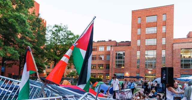 See scenes from inside the anti-Israel encampment set up by students on the campus of George Washington University in Washington, DC.